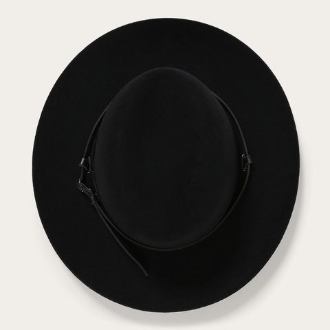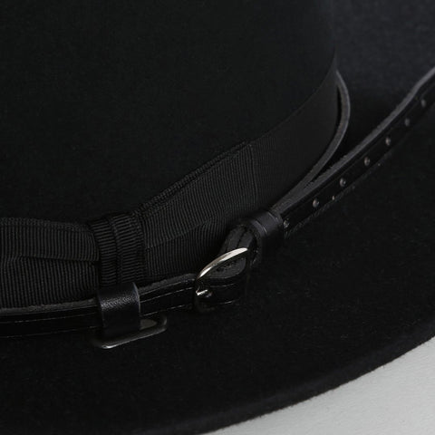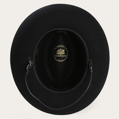 A high cattleman crease crown and big brim characterize the Cavalry. An important part of the Legendary Collection, this hat is structured with a black leather chin/nape strap.