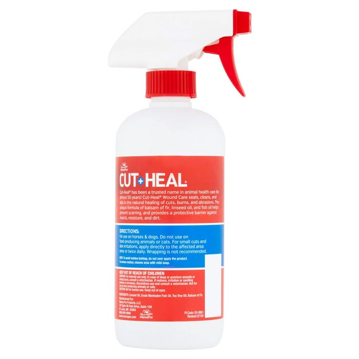 Cut Heal by Manna Pro is a versatile wound spray formulated to support the recovery of minor cuts, skin irritations, and abrasions in horses. This easy-to-apply liquid helps maintain a moist wound environment, promoting optimal skin health and helping to minimize scarring during recovery. Ideal for horses in training, turnout, and stable environments where everyday injuries may occur.