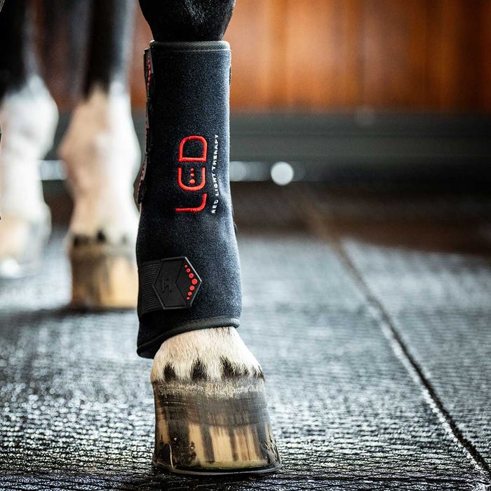 Support soft tissue health and post-exercise recovery with the Horseware LED Red Light Therapy Leg Wrap. This advanced wrap uses 110 LEDs to deliver targeted red (660nm) and infrared (850nm) light, helping to promote circulation and encourage healthy tissue activity. The dual light wavelengths work together to support both surface and deeper tissues, contributing to overall leg wellness in horses.