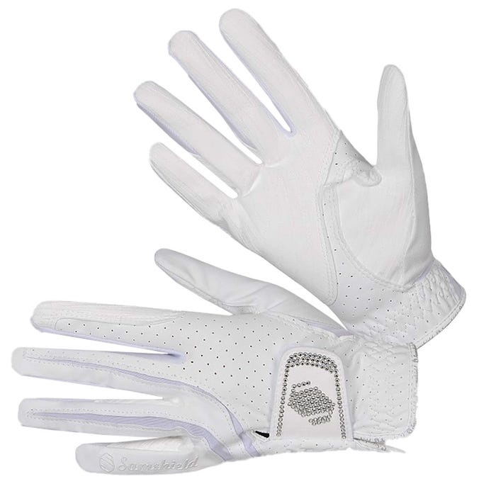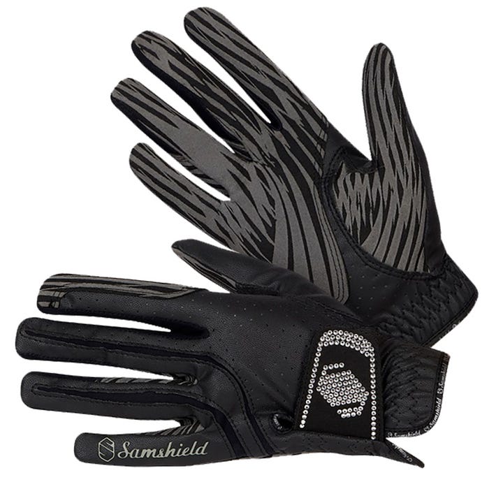 The Samshield V-Skin Swarovski Gloves are high performance gloves that offer beautiful styling with superior grip. The ultra thin perforated synthetic leather is lightweight, durable and breathable and has a soft leather-like feel. The suede palm and silicone grip offers exceptional grip and flexibility. Lycra in the fingers prevent stretching and allow for freedom of movement, and the spandex close fitting wrist is finished with a Velcro closure adorned in clear Swarovski crystals.